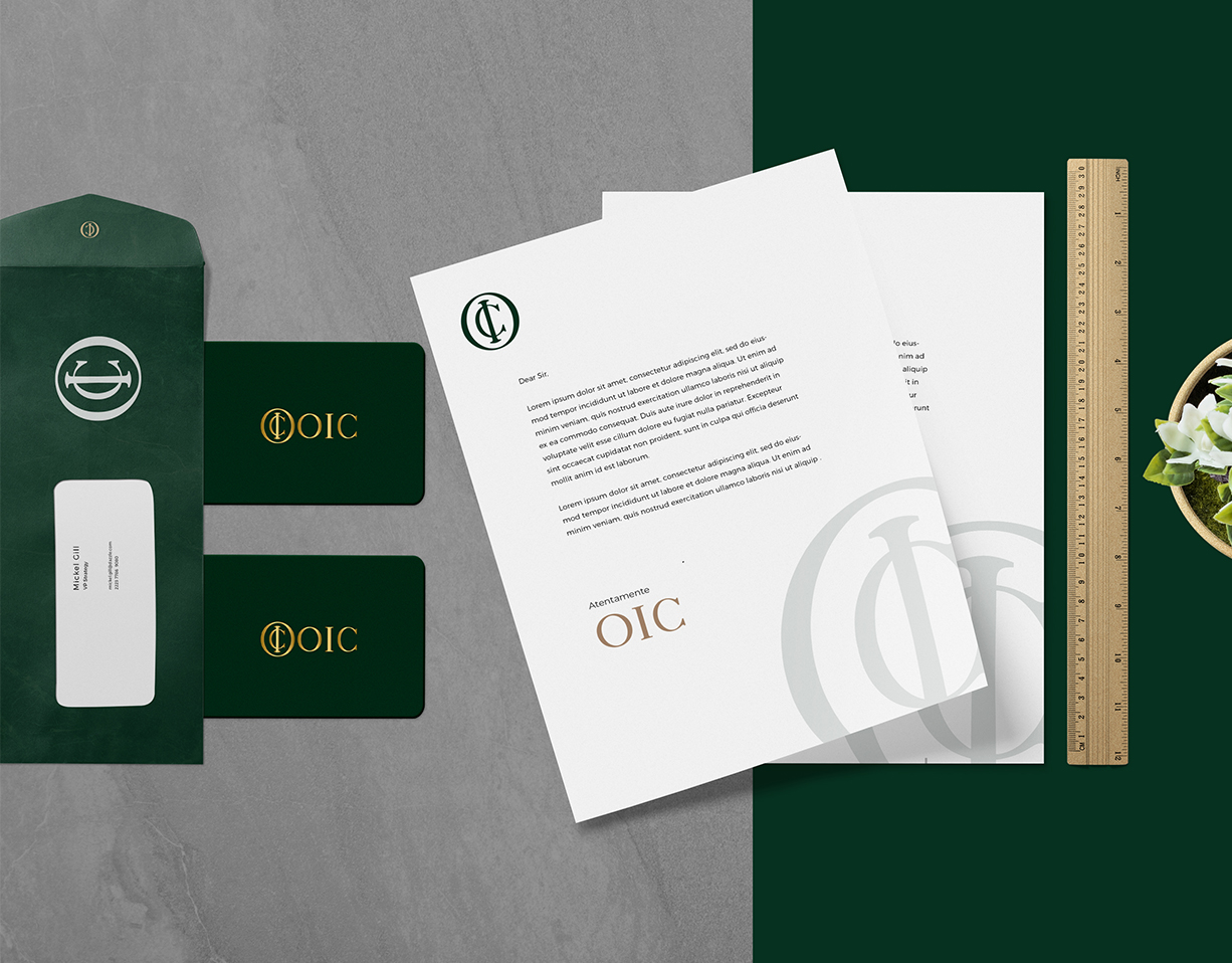 Para OIC, creamos un sello distintivo que va más allá de una simple representación gráfica. Las iniciales “OIC” se han transformado en un emblema moderno y elegante que no solo representa su identidad como empresario, sino que también incorpora elementos personales significativos.